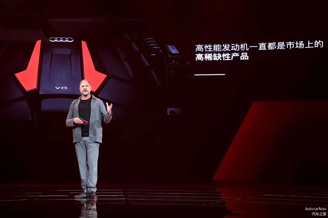 这款新车几乎聚焦了奥迪品牌所有的硬核高科技。带有纯机械托森差速器的“满血”版Quattro四驱,拥有CDC避震和空气弹簧的自适应悬架,以及整个发布会始终贯穿的核心4.0T 双涡轮增压V8发动机。
