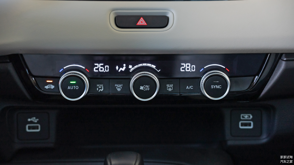 换挡杆前方的储物格内配有手机无线充电板,并且全车均配备了前2后2的USB充电插口。