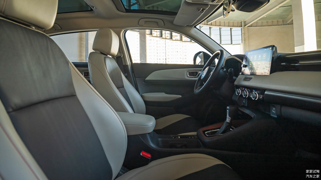 很多消费者都渴望自己的车在内饰上能够有创新不油腻,全新缤智就采用了简约的中控设计,贯穿式的空调出风口、层次感极强的仪表台,视觉感受非常顺应这个时代。