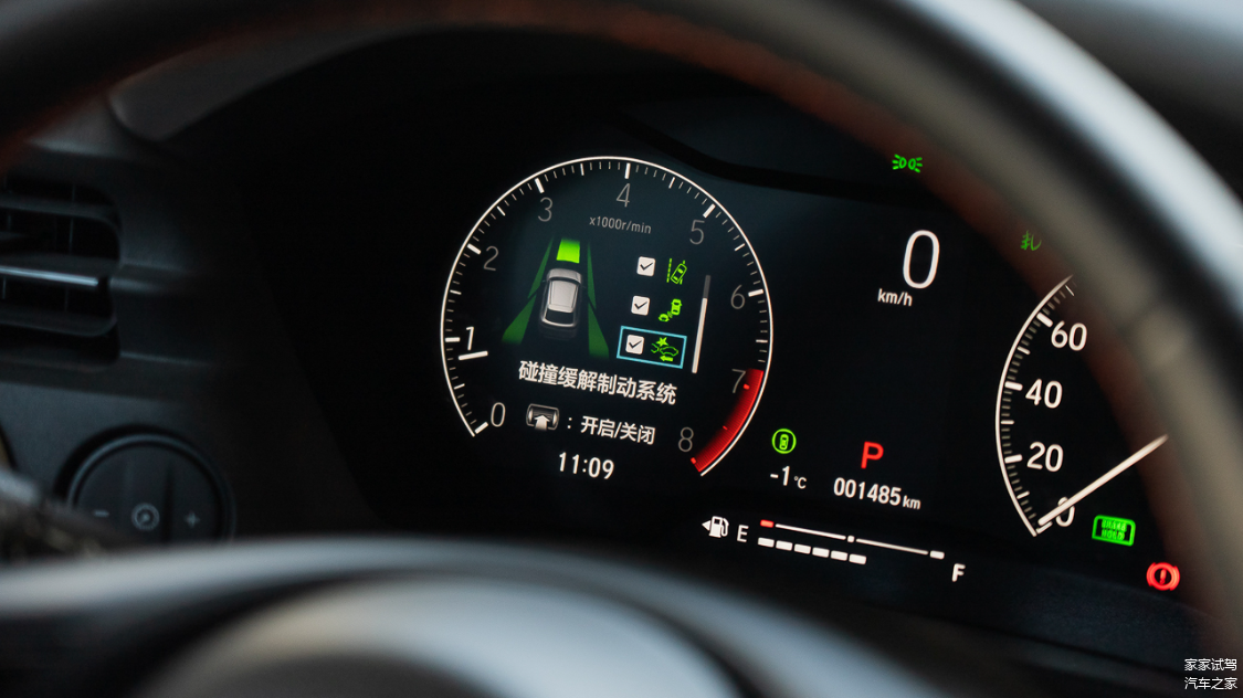 7英寸半液晶仪表盘通过多功能方向盘切换左半边的显示界面,可呈现箭头指引导航、驾驶辅助功能相关的信息。