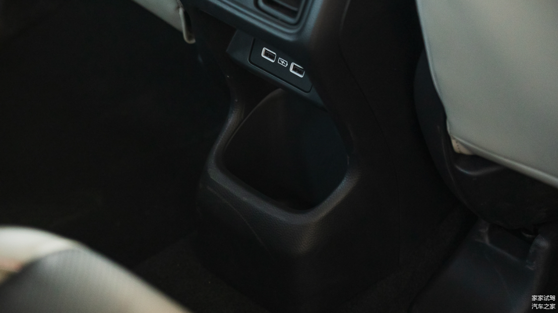中间地台的凸起并不算高,而且空调出风口下方不仅有两个USB充电口,还设计有一个杯架。除此之外,后排两边的车门上也各有一个杯架设计。