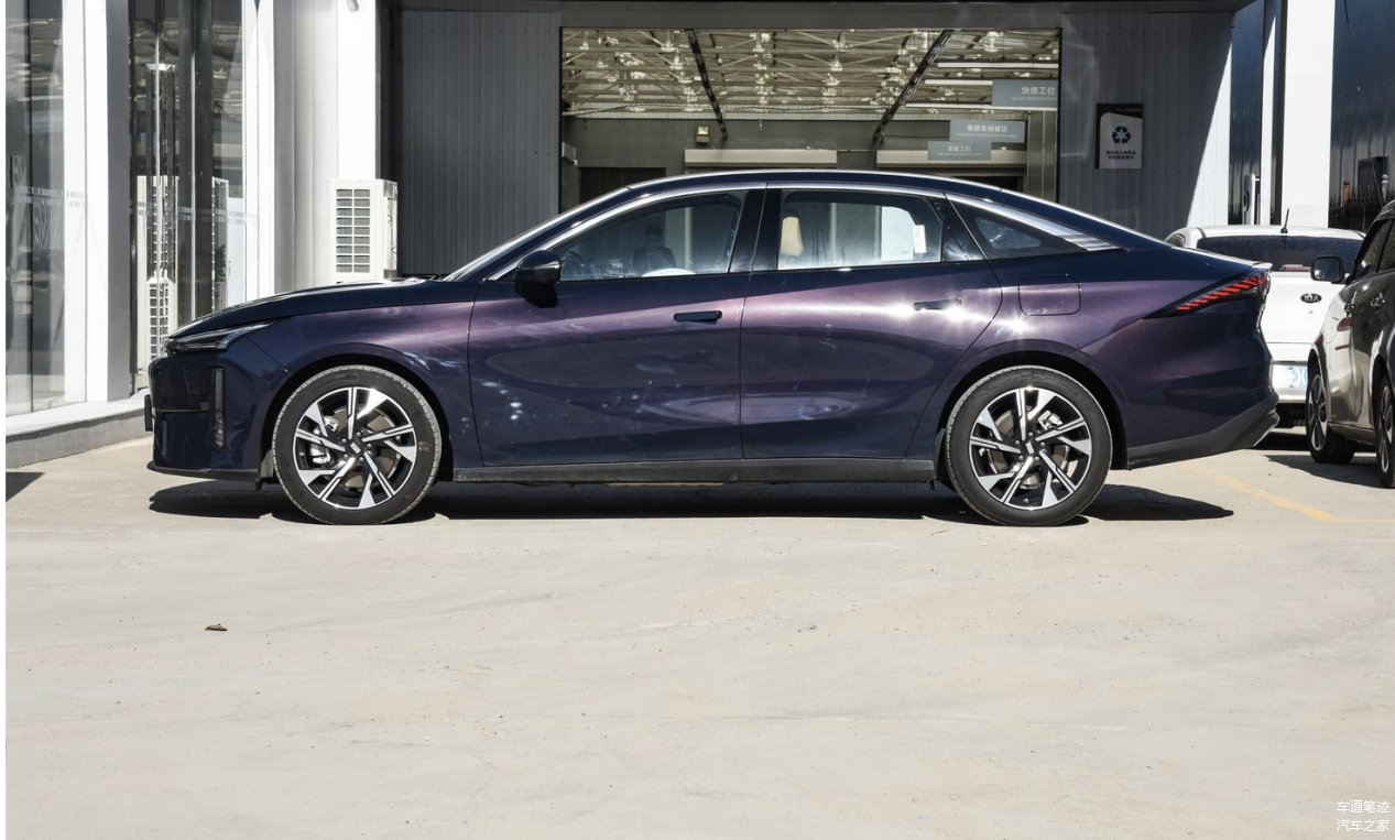 侧面来看,吉利银河L6采用了溜背式造型,车顶线条流畅优雅,营造了一种运动轿跑的风格。车身尺寸方面,吉利银河L6的长宽高分别为4782/1875/1489mm,轴距为2752mm,风阻系数为0.26Cd,属于同级别中的佼佼者。车门采用了隐藏式门把手,与车身融为一体,提升了车身的整体感。轮圈采用了低风阻设计,搭配225/45 R18的轮胎,既有美观效果,又有节能效果。