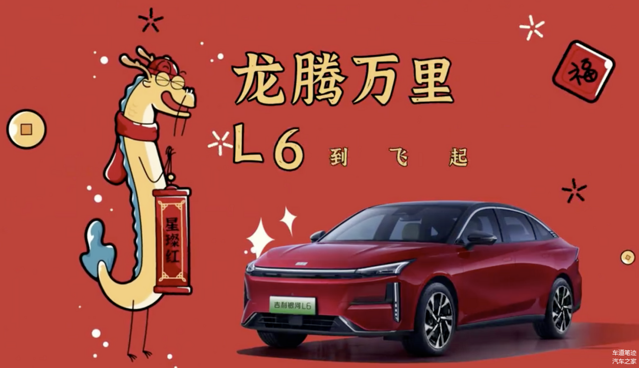 吉利汽车作为国内领先的新能源汽车制造商,一直致力于打造高品质、高性能、高科技的新能源汽车产品。在2023年9月,吉利汽车旗下的高端新能源汽车品牌——吉利银河,正式推出了旗下首款轿车车型—吉利 银河L6(图片 | 参数 | 询价)。这是一款基于e-CMA架构打造的插电混动轿车,定位于紧凑型轿车,售价区间为11.58-14.98万元。日前,我们从吉利银河官方了解到,吉利银河L6推出了龙年新配色“星璨红”,为用户提供了新的选择。下面,我们就来详细介绍一下这款车的外观、内饰、配置和动力等方面的特点。