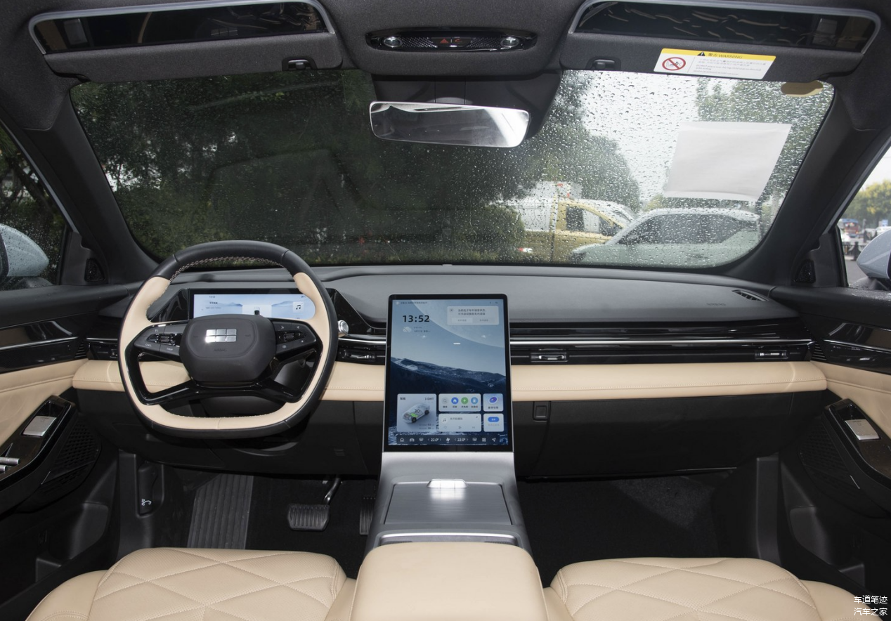 •内饰设计科技感十足,环抱式座舱设计舒适宽敞,10.25英寸液晶仪表和13.2英寸竖状中控大屏显示了丰富的信息和功能,高通骁龙8155芯片和银河N OS系统提供了强大的智能能力。