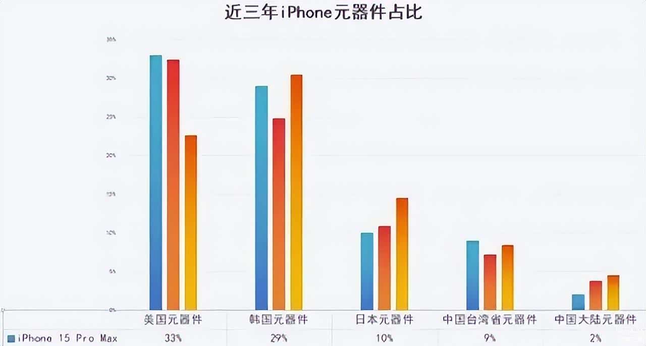 日本媒体拆解iPhone 15 Pro后发现,中国大陆的零部件只占了可怜的2.5%。