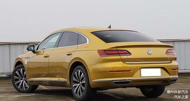 大众CC的尾部是向上翘起的造型,而且后备箱盖加入了小鸭尾的设计。与掀背式尾门融为一体,很有层次感。车身底部是双边双出的真排气布局,并且加入了贯穿的镀铬线条,看起来更加美观,运动。