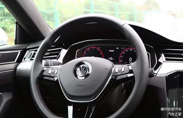 大众传统的方向盘造型,基本整套内饰都是从迈腾身上移植过来,熟悉的手感。但是这次有方向盘加热和换挡拨片,可以营造一些运动车型的氛围。采用了10.3英寸的全液晶仪表盘,还是为中庸的内饰增加了一些亮点,显示效果比较清晰,而且实用性很高,和奥迪一样支持显示地图导航。