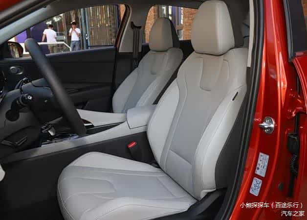 现代伊兰特同样使用仿皮材质座椅,主副驾驶座支持电动调节,并且前排座椅有加热功能。整个的配置要比朗逸高一点。座椅的设计看起来比较精致。但是坐垫和靠背的尺寸都有点偏短,对于高个子人士并不太友好,坐垫填充物还是很柔软。