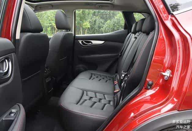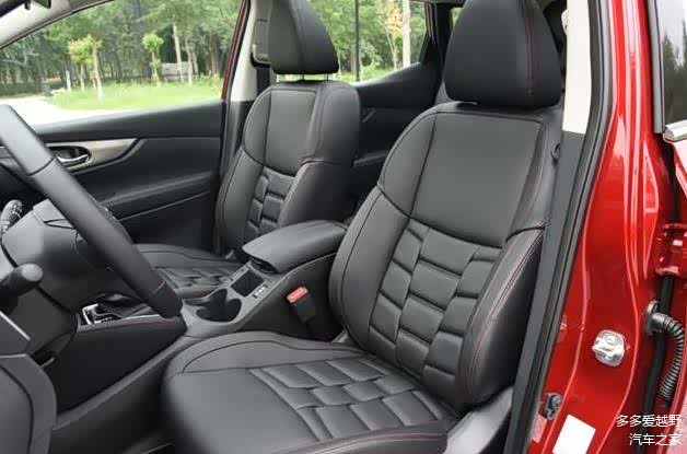 日产逍客依然保持了大沙发的乘坐体验,整体的填充物很柔软,乘坐舒适性很好,但是两侧的包裹性仍然比较一般。最低配车型仍然是植织物材质座椅,其他都是真皮座椅,支持主驾驶座电动调节,顶配车型有座椅加热功能。