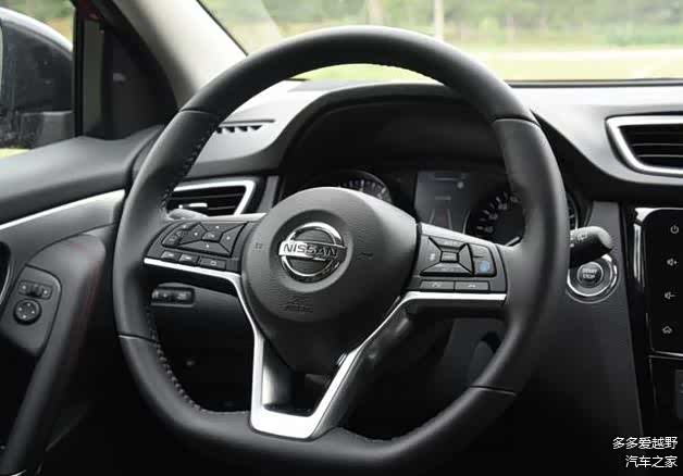 日产逍客同样是平底样式的多功能方向盘,低配车型是塑料材质,其他都是真皮包裹,但是粗细很明显,常握的地方手感比较粗壮。多功能按键的排列很密集,驾车过程中不太容易盲操作。仪表盘是五英寸的彩色显示屏幕和两边的指针仪表,造型和途岳差不多,但就是屏幕变成了彩色的,全系车型内置行车记录仪。