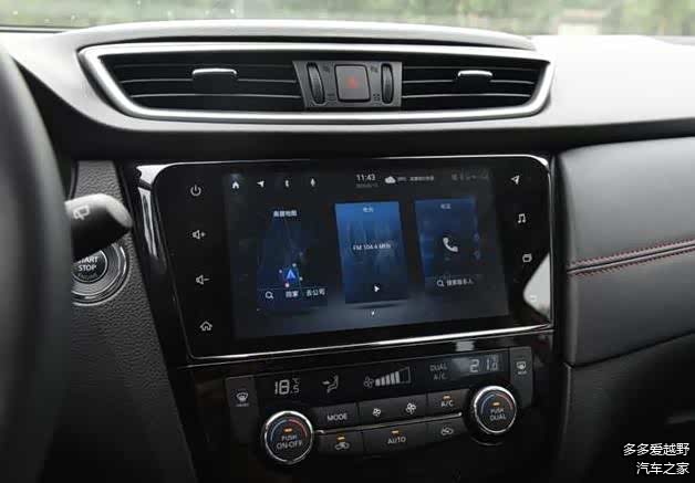 日产逍客全系标配九英寸的触控液晶屏幕,同样支持导航,蓝牙电话,语音识别控制系统等功能,但是没有手机互联,有车联网。整体的清晰度和流畅度和途岳相差不大,但是两边有更加丰富的快捷按键,使用起来很方便。空调控制区仍然是旋钮和按键的搭配,并且有独立的空调显示屏幕,整体风格更像是硬派SUV的造型。