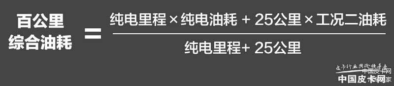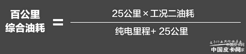 在工况一将电量耗尽后,进行工况二测试,车辆需要继续进行25公里的测试。最终综合油耗结果,基本是通过下面的公式完成计算的。
