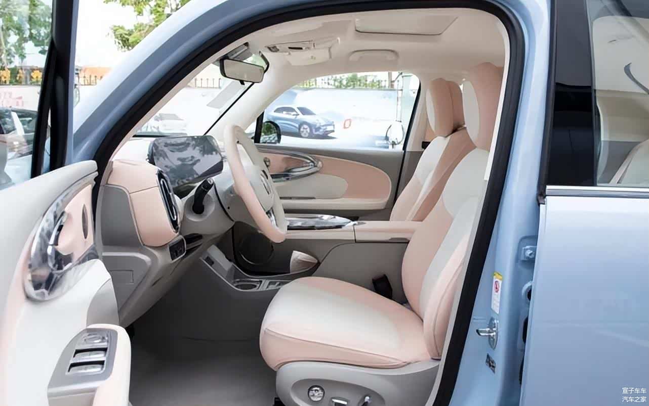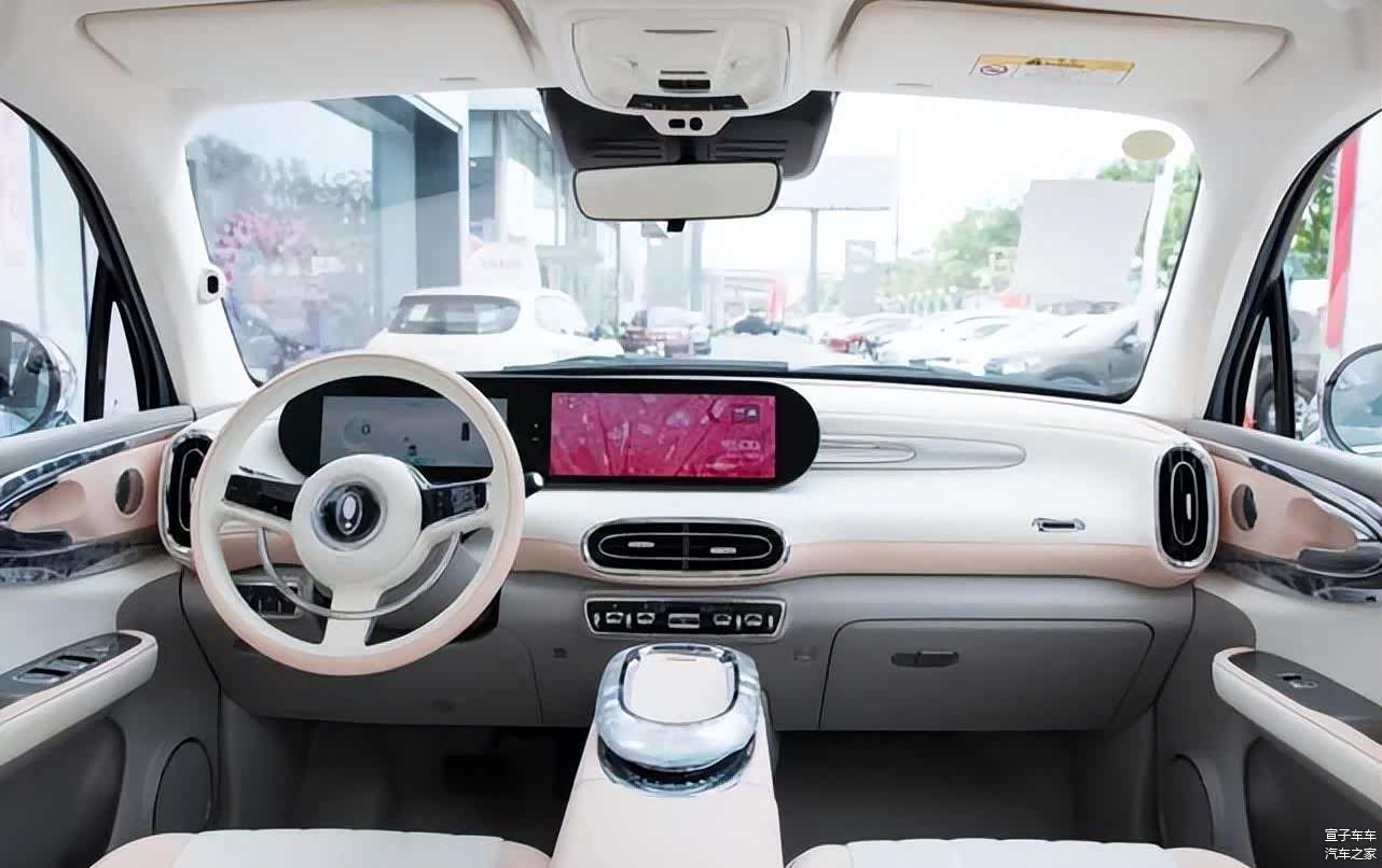 不过相比于外观的复古,内饰就显得更为现代化,这其实是比较好的做法,开车是离不开这些智能化功能辅助的。可以看到芭蕾猫的内饰拥有双联屏的设计,科技属性很强,分别为12.3英寸的中控屏幕和10.25英寸的全液晶仪表盘,智能化配置很齐全,车联网OTA升级,甚至还支持面部识别和4G网络,可以满足当下用车需求。当然欧拉也没有忘记这是一款属于女性的车,车内加入了很多圆形可爱元素,特别是档把区这个岛式扶手,夜晚搭配氛围灯很漂亮。