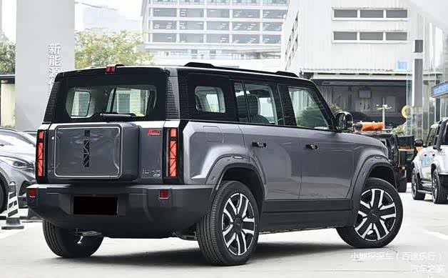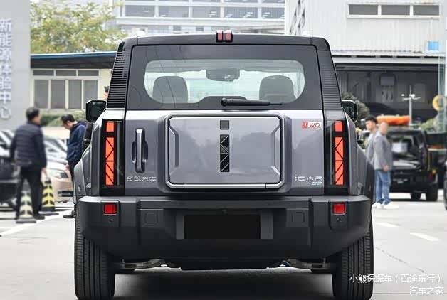 尾部造型方方正正,使用了侧开式后尾门+小背包的组合,也是完全硬派SUV的设计风格。尾灯内部光源结构和车标相呼应,点亮后有着很高的辨识度。