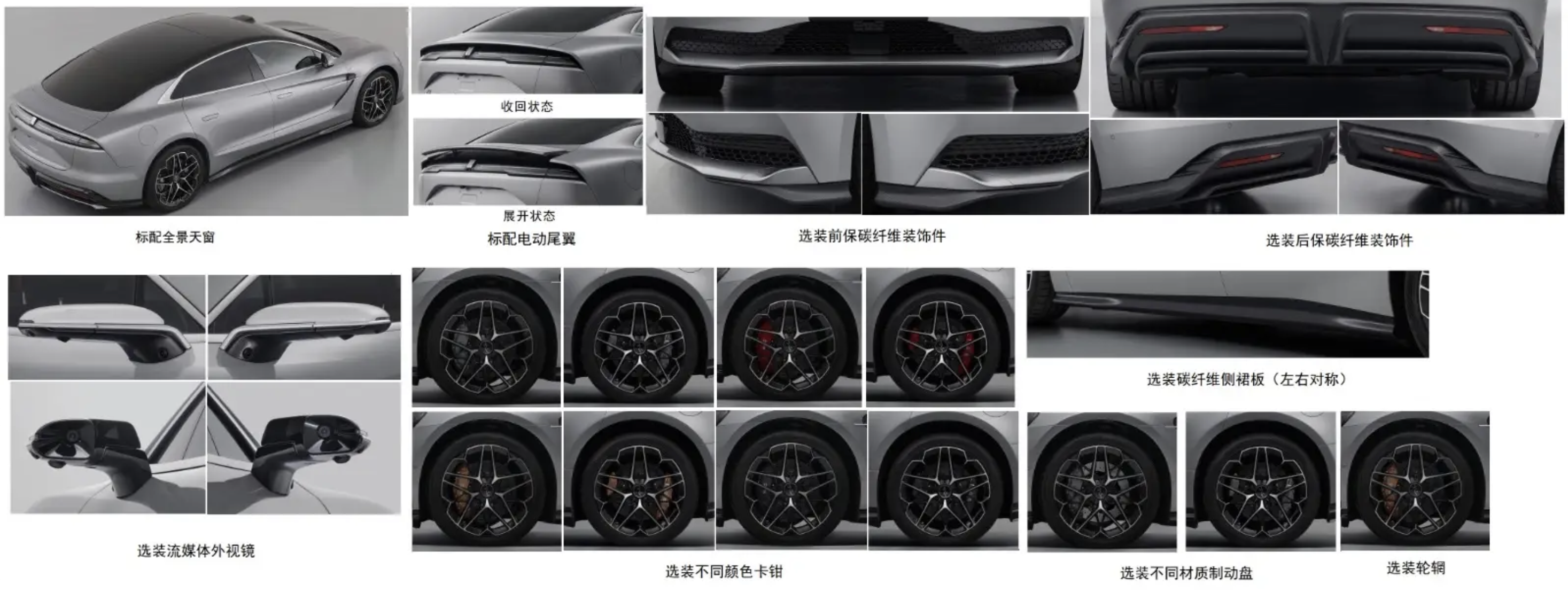 从申报图中可以看出,仰望U7的外观设计独具匠心,采用溜背造型,尽显优雅动感。无框车窗和隐藏式门把手设计,不仅提升了整车的美观度,更突显出其科技感。全系标配的可升降电动尾翼,不仅是一道独特的风景线,更在高速行驶时提供稳定的下压力。同时,仰望U7还提供了流媒体后视镜和碳纤维装饰、制动卡钳等多种选装配置。