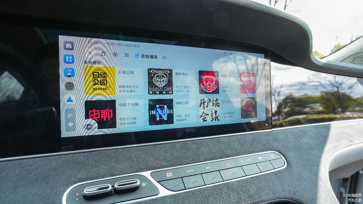 车机的智能化程度很高,大部分的常用功能放置在一级菜单,如全景影像、导航、设置、空调等,方便日常的使用。APP覆盖全面,常用的在线导航、音乐、电台、播客都能见到。另外还支持第三方的视频类APP,像年轻人非常喜欢的哔哩哔哩、追剧常用的爱奇艺等等。同时大部分的常用功能,如开闭车窗、天窗、调节空调、导航等,可以直接用语音控制,支持双区识别,一句话执行多个指令等等,不用动手就能操作大部分功能。