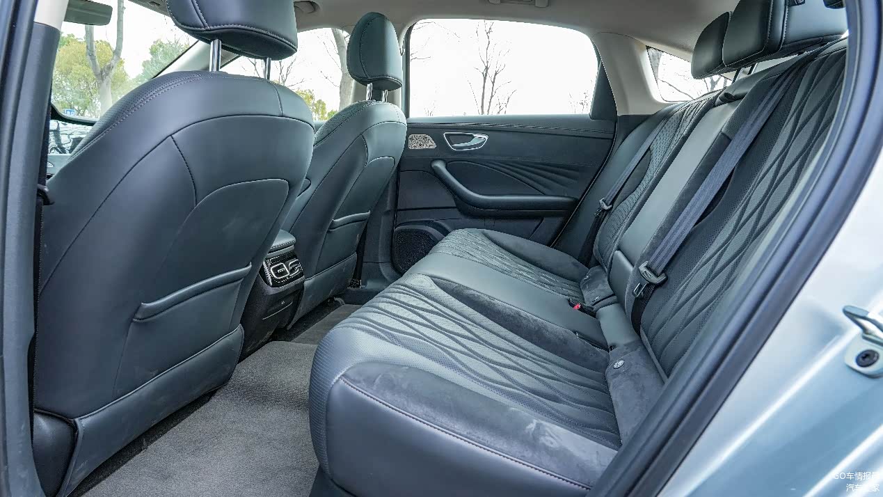 目前市场上的插混轿车不少,但是在10万元级做到中型轿车尺寸的就不多了。荣威D7 DMH的车身长度做到了4890mm,轴距为2810mm,是一台非常标准的中型轿车。作为一台家用轿车,拥有宽裕的空间表现是非常必要的。荣威D7 DMH这样的尺寸也换来了相应的内部空间表现,相比于大部分的同价位插混轿车更优秀。