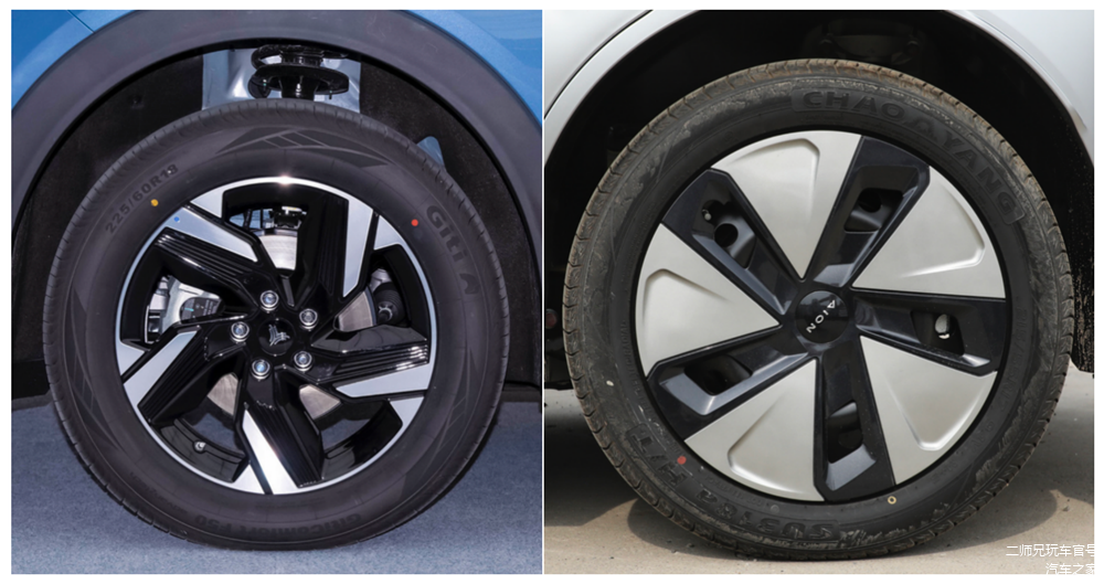 再比如轮毂,哪吒X全系标配18英寸铝合金轮毂,埃安Y Plus除高配车型之外,都是17英寸或18英寸的钢轮毂,但是聪明的加上了轮毂饰盖。