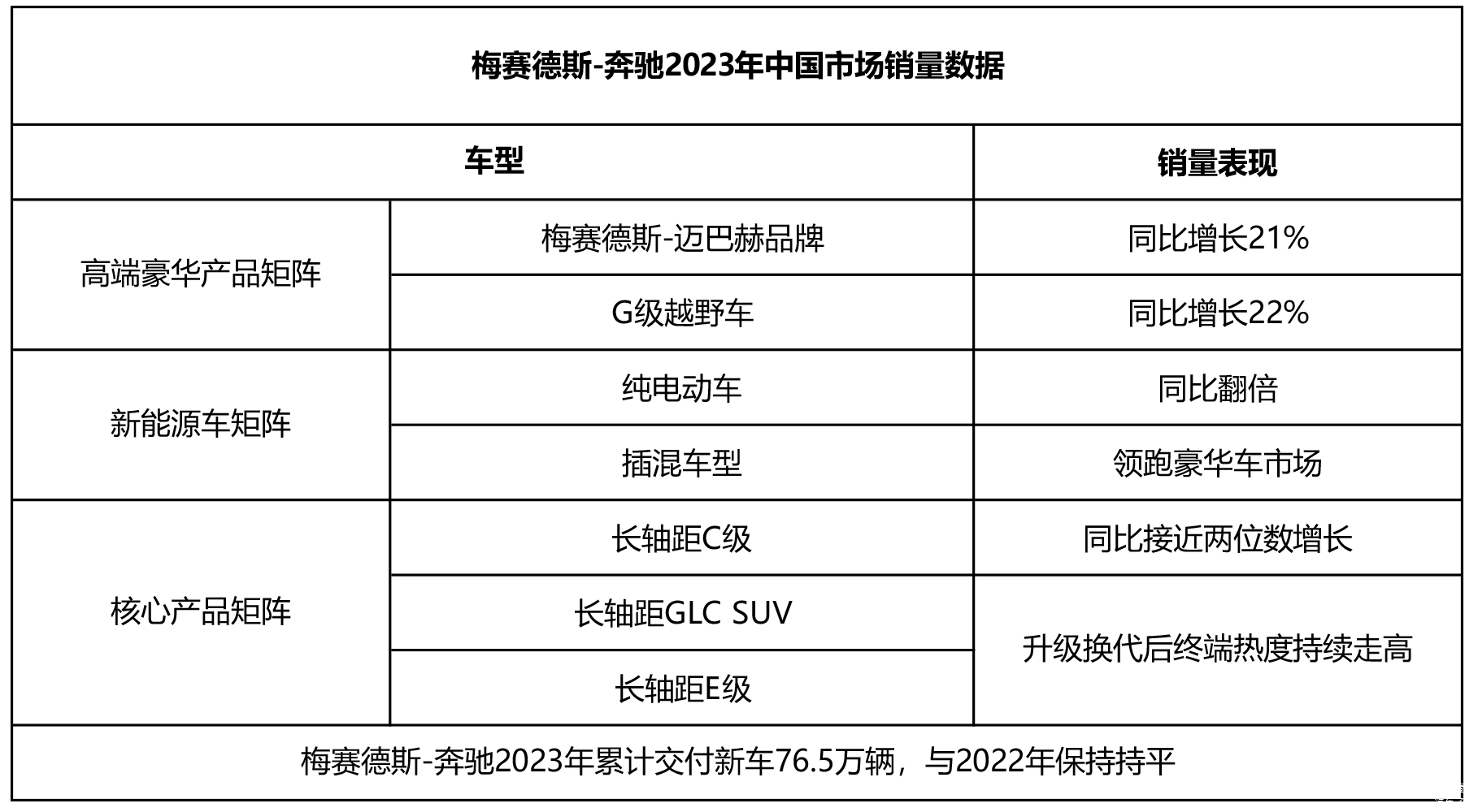 新能源车方面,奔驰2023年纯电动车实现翻倍增长,插混车型销量也领跑豪华车阵营。