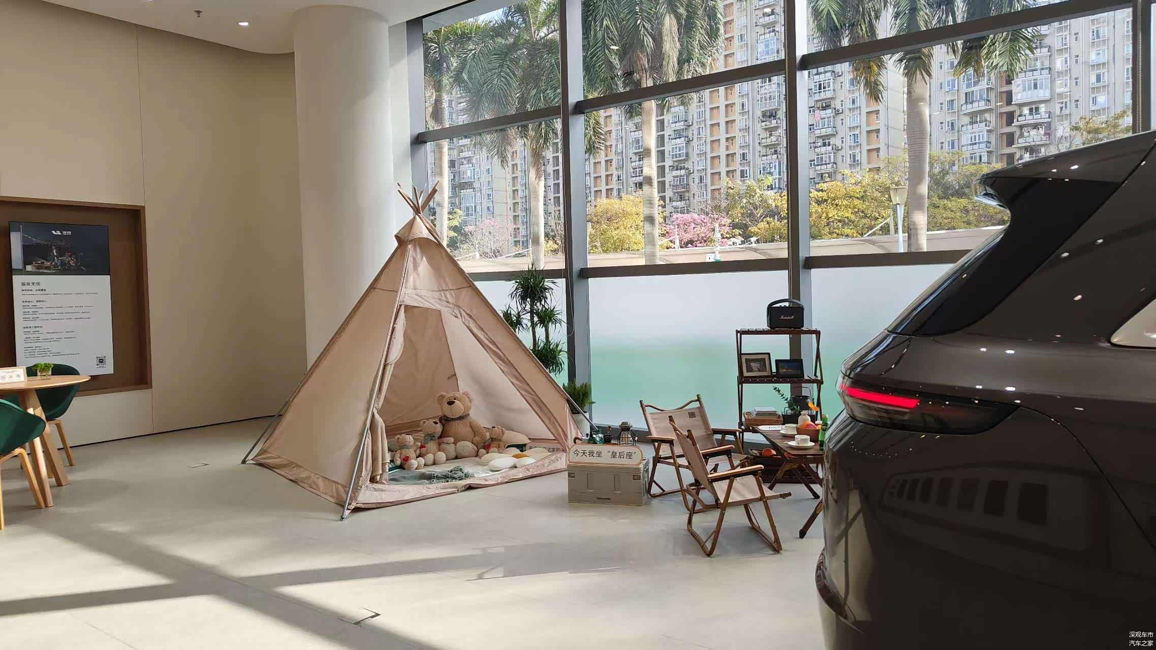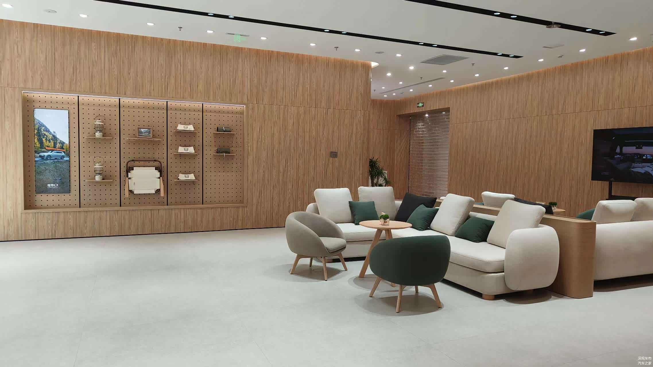 进入店内,一楼为车辆展示区,展厅内停放的理想L9、L8等车型醒目,客户进店即可亲切感受理想汽车的产品魅力。展厅内还设置了灵活的模块化选配墙(包含车漆,内饰等多产品类型的选配元素)、以及户外露营场景体验,为用户提供了场景化沉浸式的空间体验。二楼为治谈区 & 家庭活动区 & 车主活动区,包含水吧台、沙发区、儿童区等设施,多场景功能集合统一,使空间利用最大化。店内整体呈现木色系,传达出惬意且舒适感受,突出家的温馨和人文科技的相互交融,彰显理想汽车的品牌定位调性。