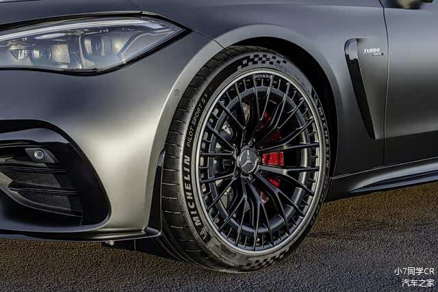 新车标配了19英寸轮毂(前265/40 R19、后295/35 R19),同时还可选装20英寸密条辐熏黑轮毂+红色AMG刹车卡钳。