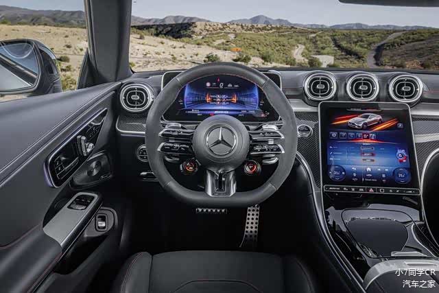内饰设计部分,新车中控台区域搭载了三幅式平底AMG Performance方向盘(采用Nappa真皮+翻毛皮材质包裹)、12.3英寸液晶仪表、11.9英寸竖向布局中控屏。