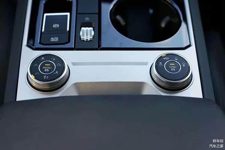 后方,有2个旋钮,左侧用于驾驶模式的选择——该车驾驶模式分为标准、经济、运动、雪地、越野和自定义。右侧旋钮用于车身高度的设定,这是空气悬架的车,所特有的功能。