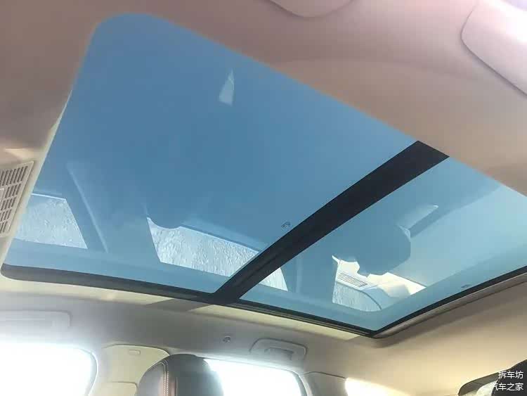 全景天窗是标准配置,配有一块电动遮阳帘。还好,没像某些车那样,以科技为名,实为节俭。