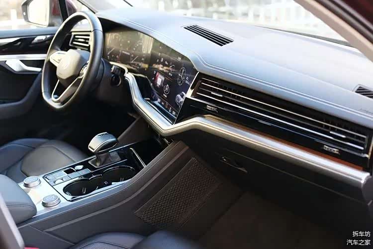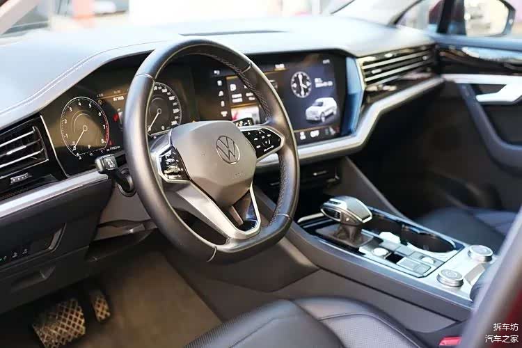 从这个角度可以看出,途锐对于中控屏位置的设定,远远胜过眼下很常见的悬浮式,看上去很舒服,很有设计感。