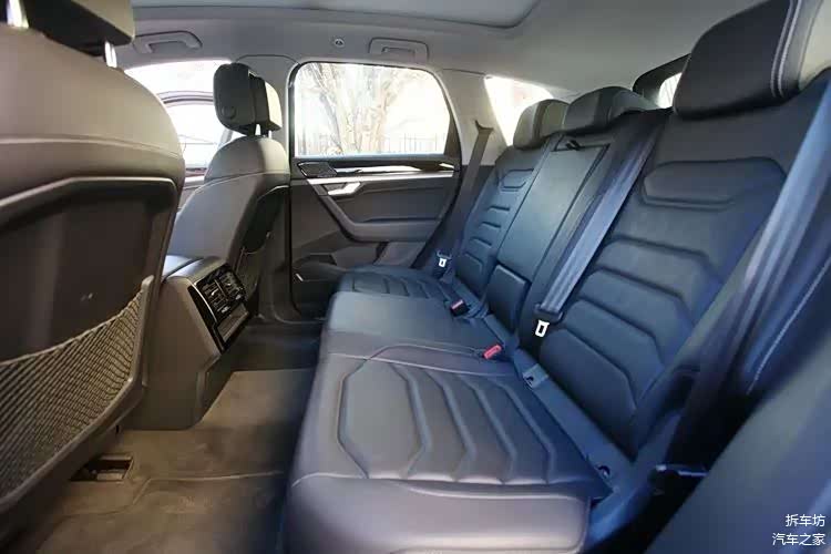 在2.0TSI 锐尚版基础上,增加8.6万元,是3.0TSI 锐享版——该版分为经典运动套装和曜黑运动套装(下图),价格相同。发动机从2.0升的直列4缸,变为3.0升的V型6缸,车轮从19英寸变为20英寸,轮胎规格285/45R20,非全尺寸备胎。此外,还增加了以下配置。
