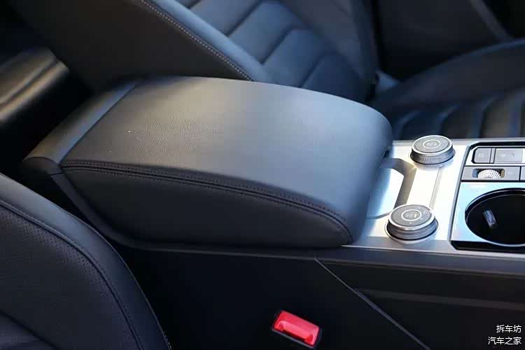 中间平台末端,是中央扶手,扶手下面的中央储物盒,容积不算大。