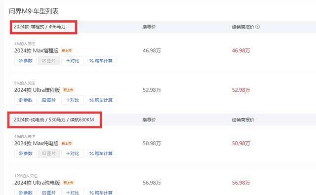 问界M9(图片 | 参数 | 询价)是华为旗下的首款智能汽车,于2023年12月26日正式上市,引起了广泛的关注和讨论。新车将推出增程版和纯电版两种动力车型,每种动力形式各有PRO和MAX版本,售价区间为45.98-54.98万元。问界M9官方称其为“1000万内最好的SUV”,拥有诸多领先的技术和配置,如后轮随动转向、数码大灯、支持800V快充、鸿蒙4.0座舱、华为ADS高阶自动驾驶辅助、副驾驶独立娱乐屏、后排极光投影、副驾女王座椅等。然而,对于许多潜在的消费者来说,买问界M9最大的难题,不是车辆的价格贵不贵,而是选增程还是纯电。
