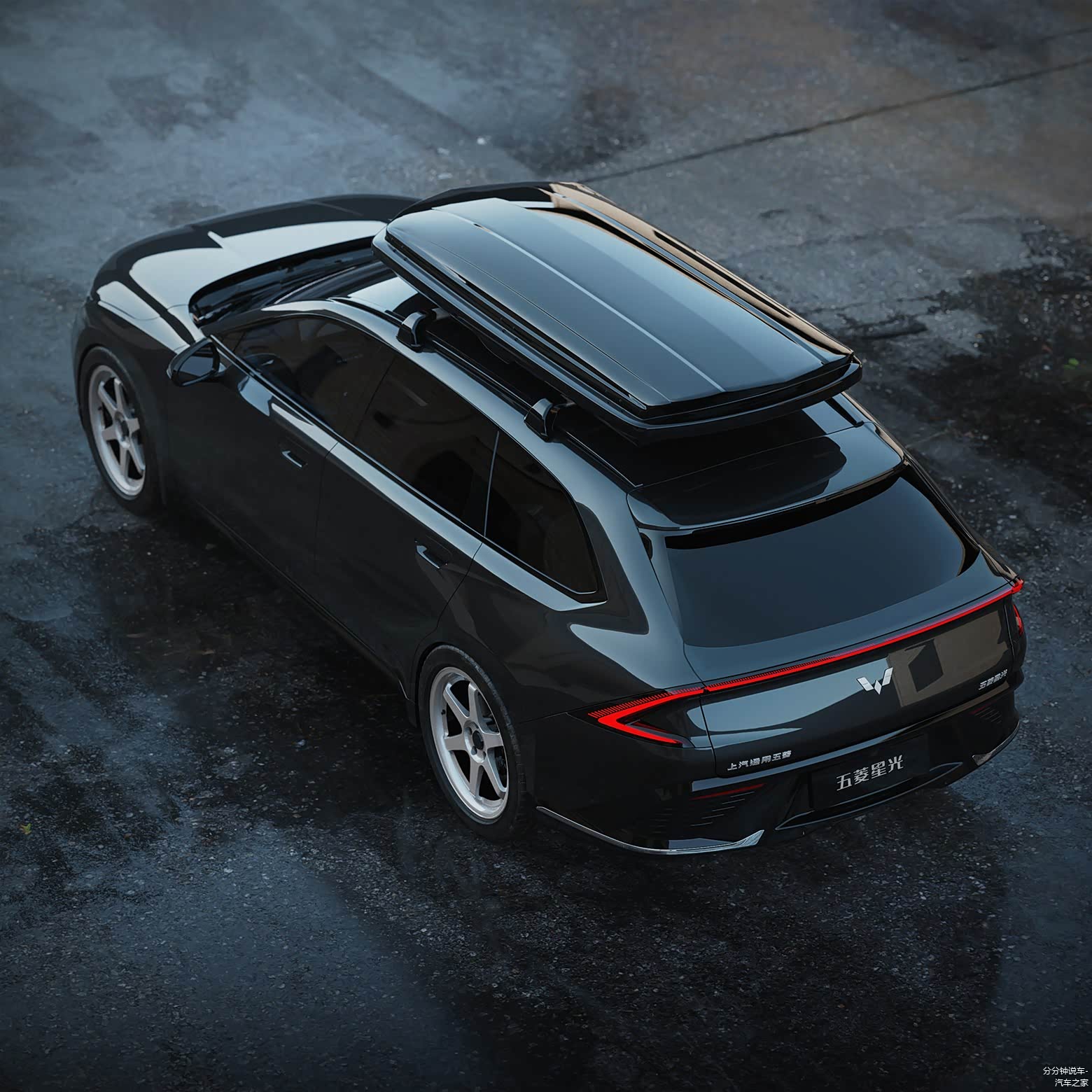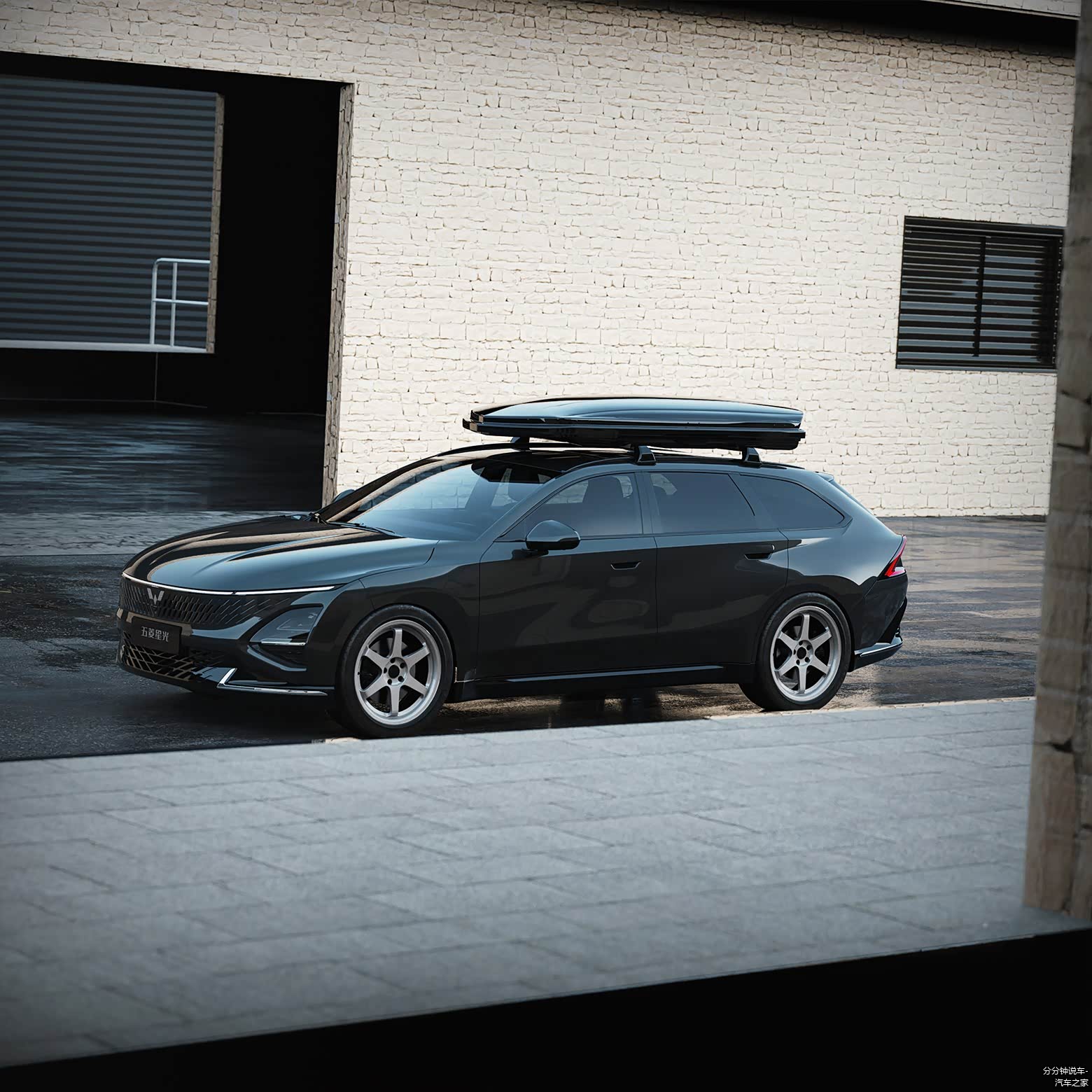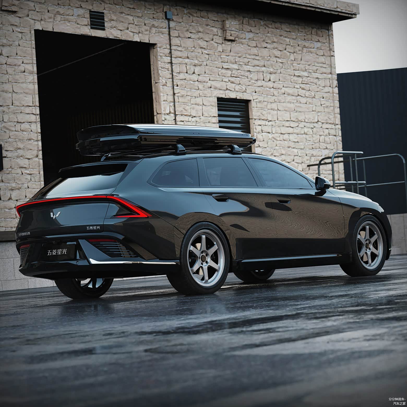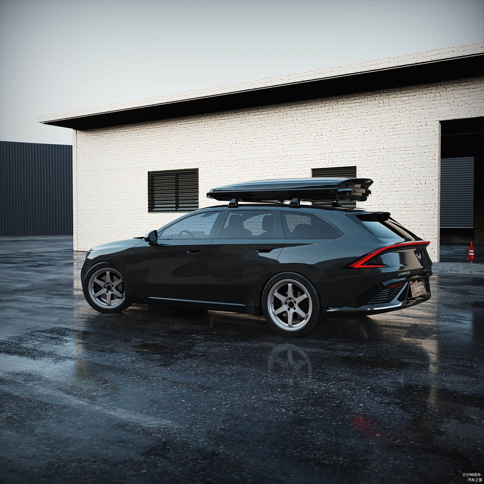 车身侧面可以看到旅行车上代表性的大号尾厢,修长和低趴的姿态,加上设计图车型是装配街车范儿十足的轮毂,为这台车的颜值增色不少。