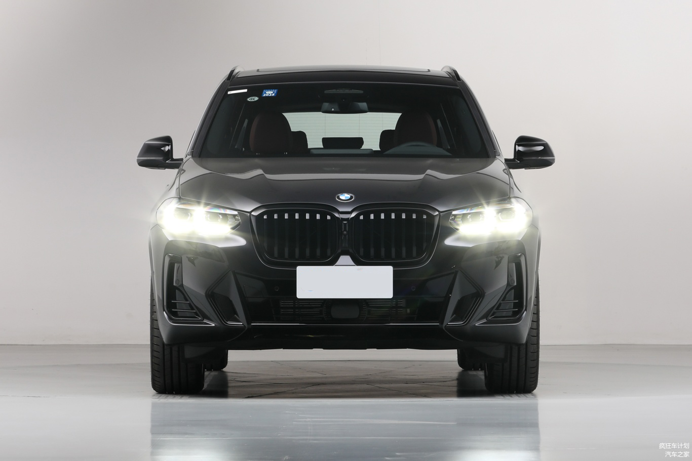 宝马×3的前脸采用了家族式设计,双肾格栅熏黑处理,展现出很强的运动气息,引擎盖上方凸起的筋线力量感很强两侧的LED前大灯造型饱满,双回造型灯珠在点亮后有很强的攻击性,前包围线条繁多,造型设计相当复杂,下格栅采用横向饰条铺满,视觉上拉伸车头完度。