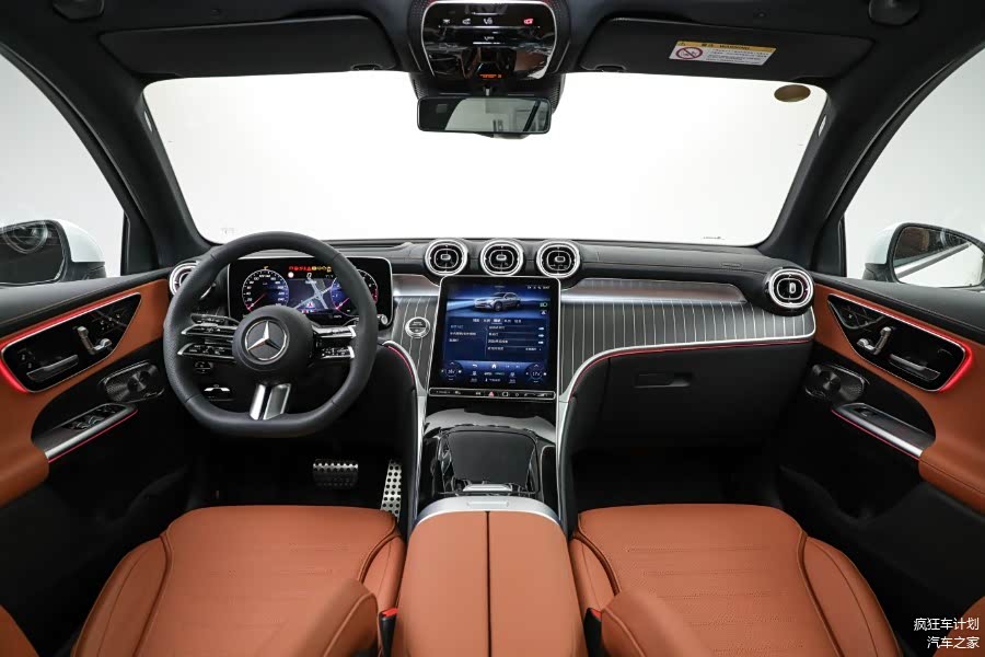奔驰GLC的内饰依然很奔驰,对比上代车型,新车内饰更具现代感。方向盘是平底造型,外观使用的皮质材料做了打孔处理,抓握感挺不错。12.3英寸全液晶仪表盘和11.9英寸中控屏是全系标配,中控屏是OLED材质。配备的360°全景影像显示效果很清晰,倒车带有引导辅助线,这个功能对于尺寸较大的SUV车型很实用。全液晶仪表盘有多种显示效果,同时也支持导航信息投射,实用性较高。标配2个车外摄像头、12个超声波雷达、1个毫米波雷达、主动刹车、并线辅助、前驻车雷达、后驻车雷达、倒车影像、L1级别智能辅助驾驶、自动泊车入位等。