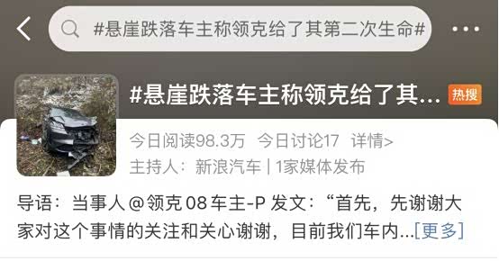 近日,领克08 EM-P牢牢占据着汽车圈的热搜榜。事件的始末是,一辆领克08 EM-P由于冰面打滑导致整辆车跌落60米高的悬崖,幸运且惊喜的是车内三人除了胳膊擦伤之外平安无事。