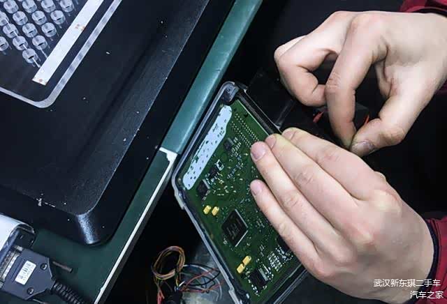伴随马力机上轰鸣声音的停止,原车马力曲线采集完毕。马力曲线图上记录了该款车各个转速区间的性能输出曲线。发动机舱内取下原车ECU电脑,ECU升级操作施工开始。此款车搭载的是博士电脑,需要将电脑开壳,连接到专业设备操作。读取原车数据。数据读取完毕,上传艾森服务,将原车数据、动态log记录数据、马力测试数据一同发到国外技师定制调校。