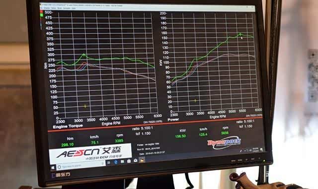 一个小时左右,国外定制调校数据传回,将数据植入原车电脑中。写入数据后将电脑装回原车,再次进行马力测试。