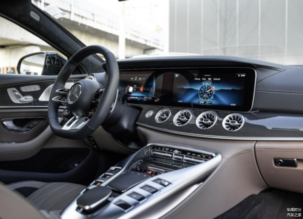 内饰方面,新款梅赛德斯-AMG GT四门版同样进行了全面的升级。怀挡设计不仅提升了车内的豪华感,还让驾驶者的换挡操作更加便捷、顺畅。而改进后的中控桥则搭载了先进的MBUX信息娱乐系统,为驾驶者提供了更加智能、便捷的交互体验。此外,电动滑动天窗的加入,不仅让车内空间更加宽敞、明亮,还让乘客在享受驾驶的同时,能够欣赏到窗外的美景。