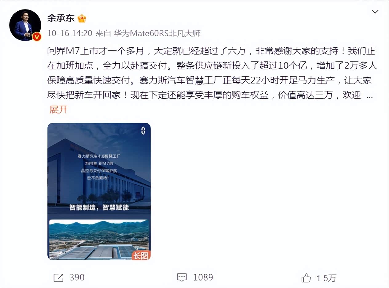 新款问界M7上市一个多月收获超过6万辆的大定订单,证明好用的智驾系统还是比较有号召力的。