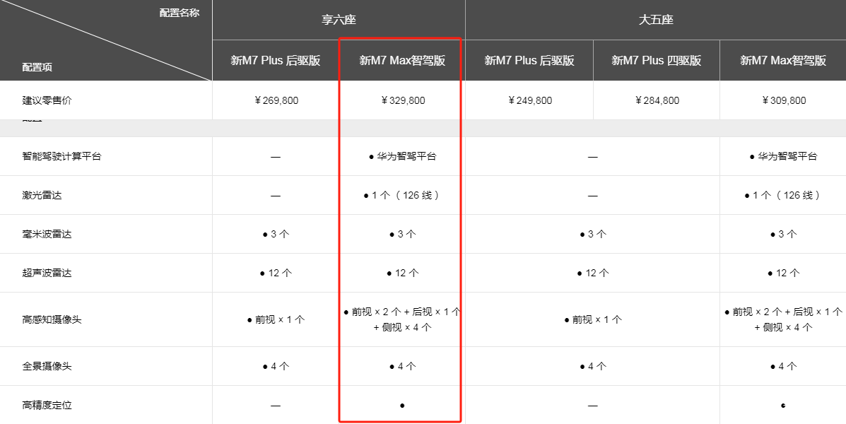 例如最近比较火的问界M7,它搭载了华为ADS 2.0系统的智驾版就比常规版贵了2万元以上。