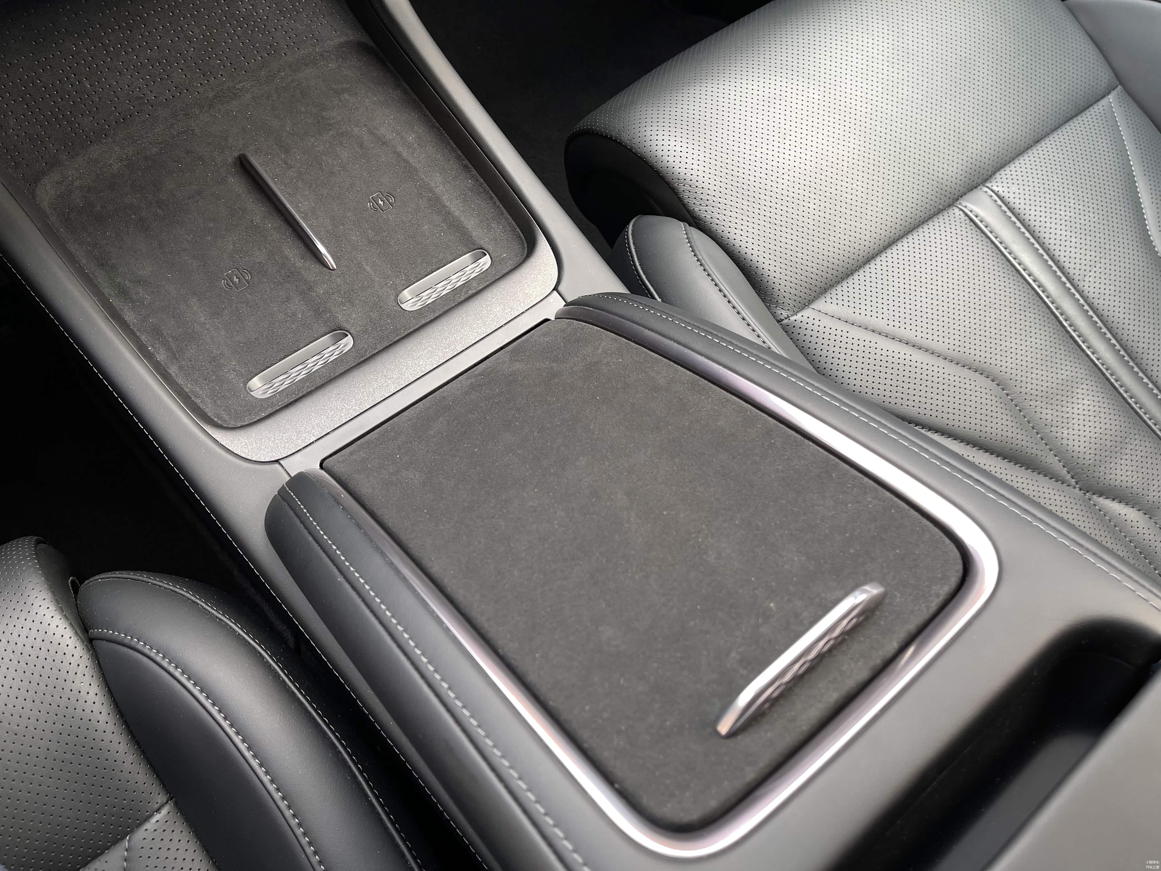 说实话黑色配色扶手箱的翻毛皮和周边真皮材质太不搭边了