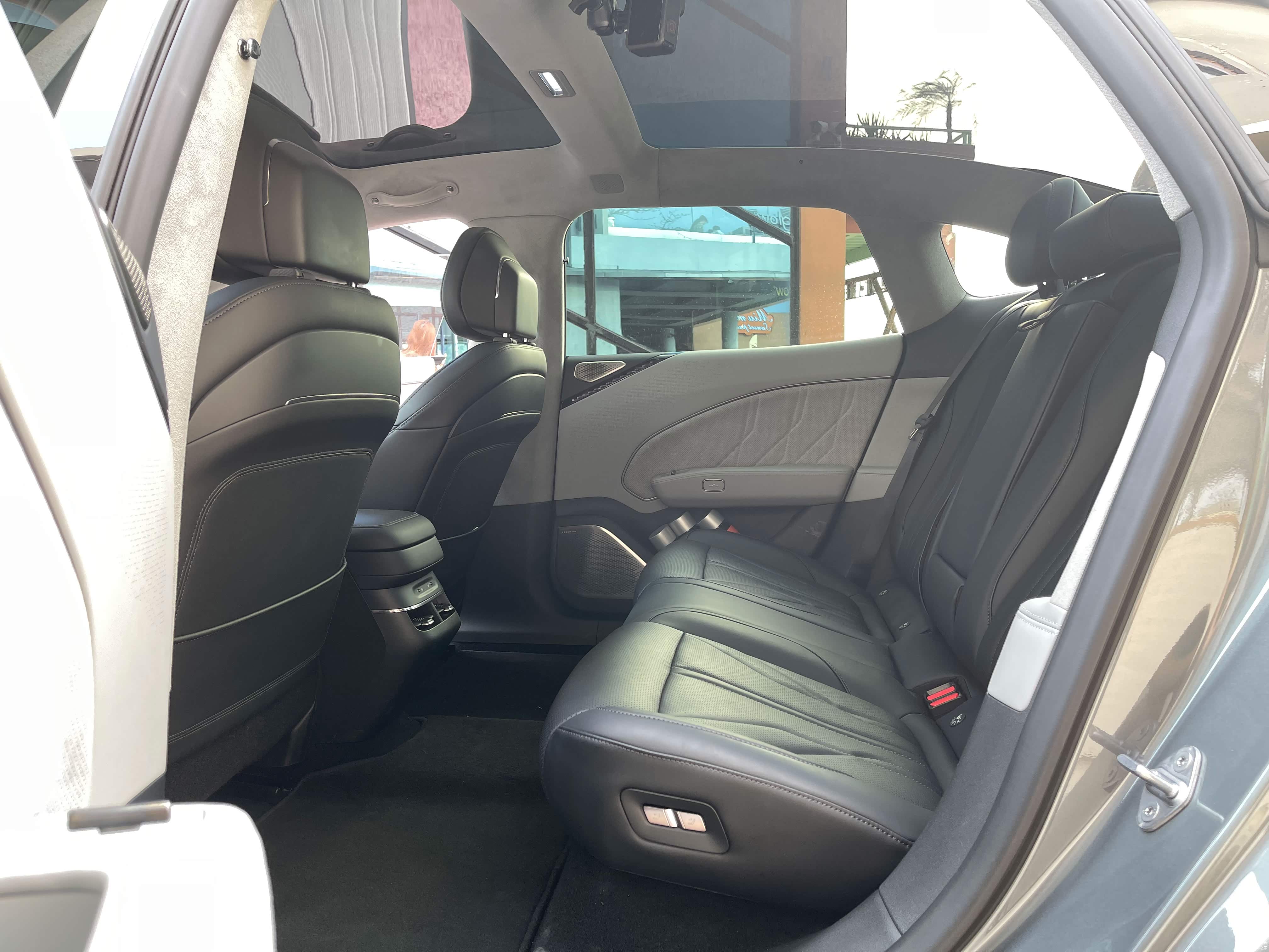 全车座椅均采用Nappa真皮座椅,乘坐偏舒适,但我一整天体验下来,发现座椅两侧的包裹不足,主驾带了独立腿拖调节,对于前排的腿部承托是很到位的。