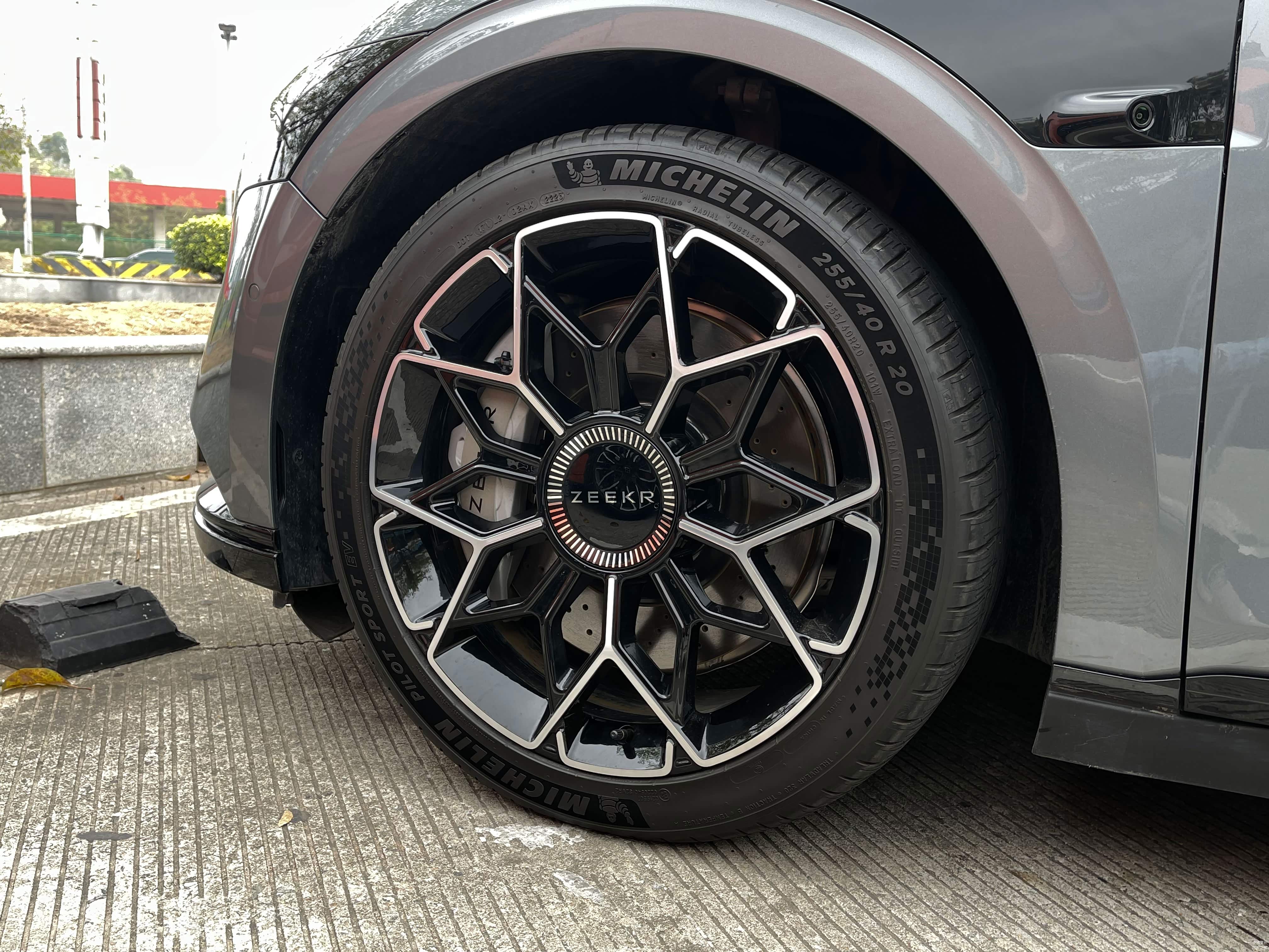 20英寸轮毂需要选装,轮胎尺寸为255/40 R20,刹车为四活塞卡钳