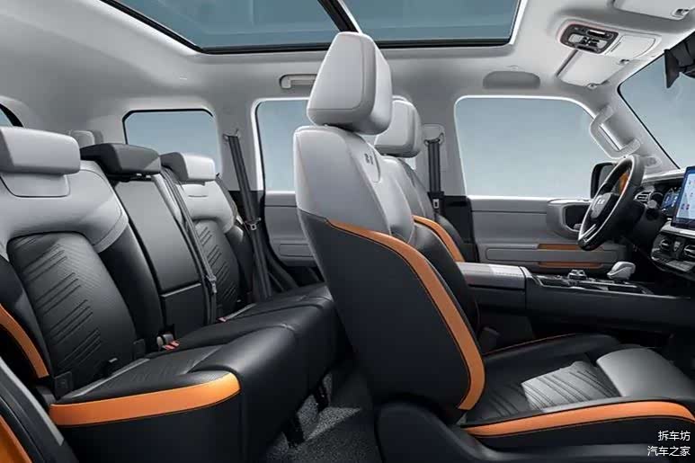再看一些细节:全新BJ40的整备质量为2130kg,最大满载质量2680kg。而坦克300的整备质量为2187kg,最大满载质量只有2585kg。也就是全新BJ40连人带物可以承载550kg,大大领先于坦克300的398kg,后者基本坐上5个成年人就接近了限值。坦克300在这个环节仅剩的优势就是可拖挂车2000kg。