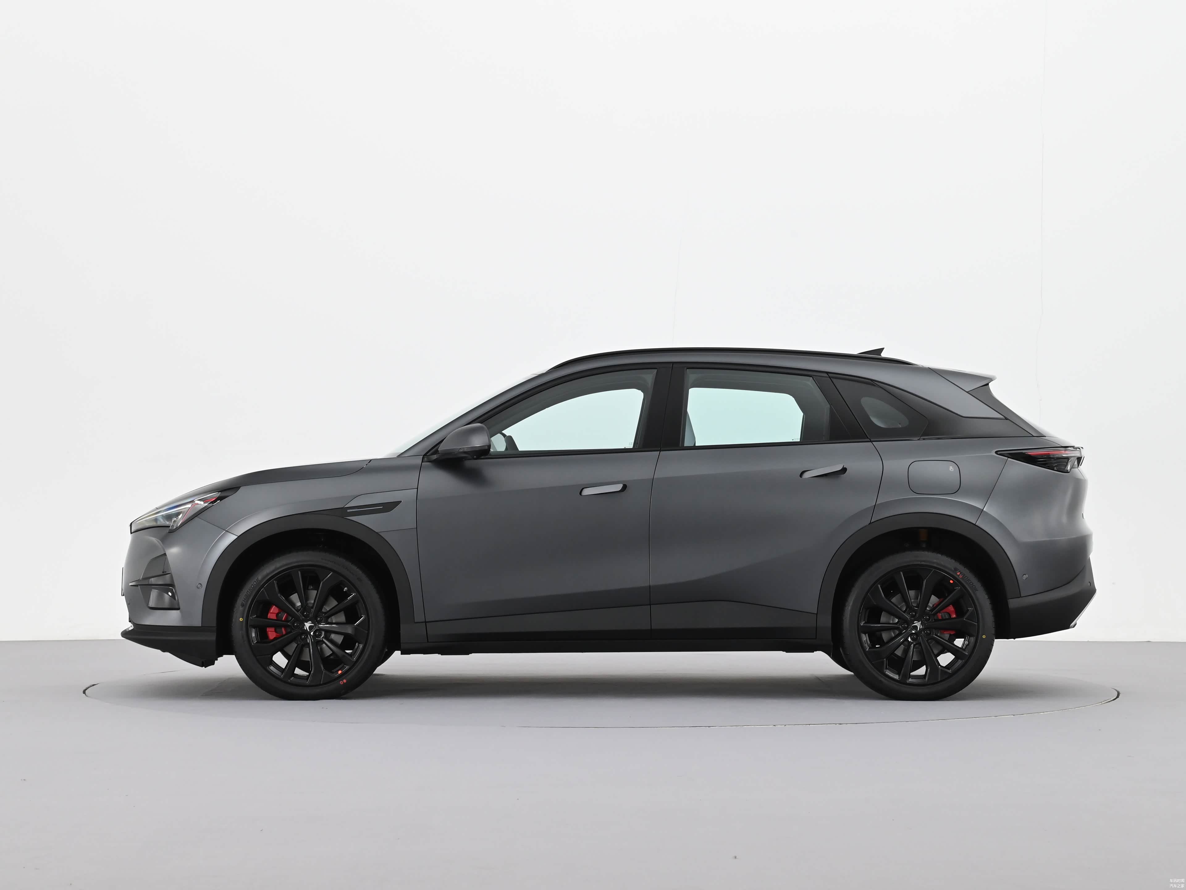 车身侧面显得颇为紧凑,但整体的比例依然协调,贯穿式的腰线设计延伸了整个侧面的视觉长度,车窗四周采用了黑色的处理,赋予了一定的运动气质,车门下方的折线处理强调了一定的层次感,隐藏式的门把手设计在行驶过程中有助于降低一定的风阻系数,全系除顶配车型装备了20英寸的轮毂外,其余三款车型均采用的是19英寸的铝合金轮毂。