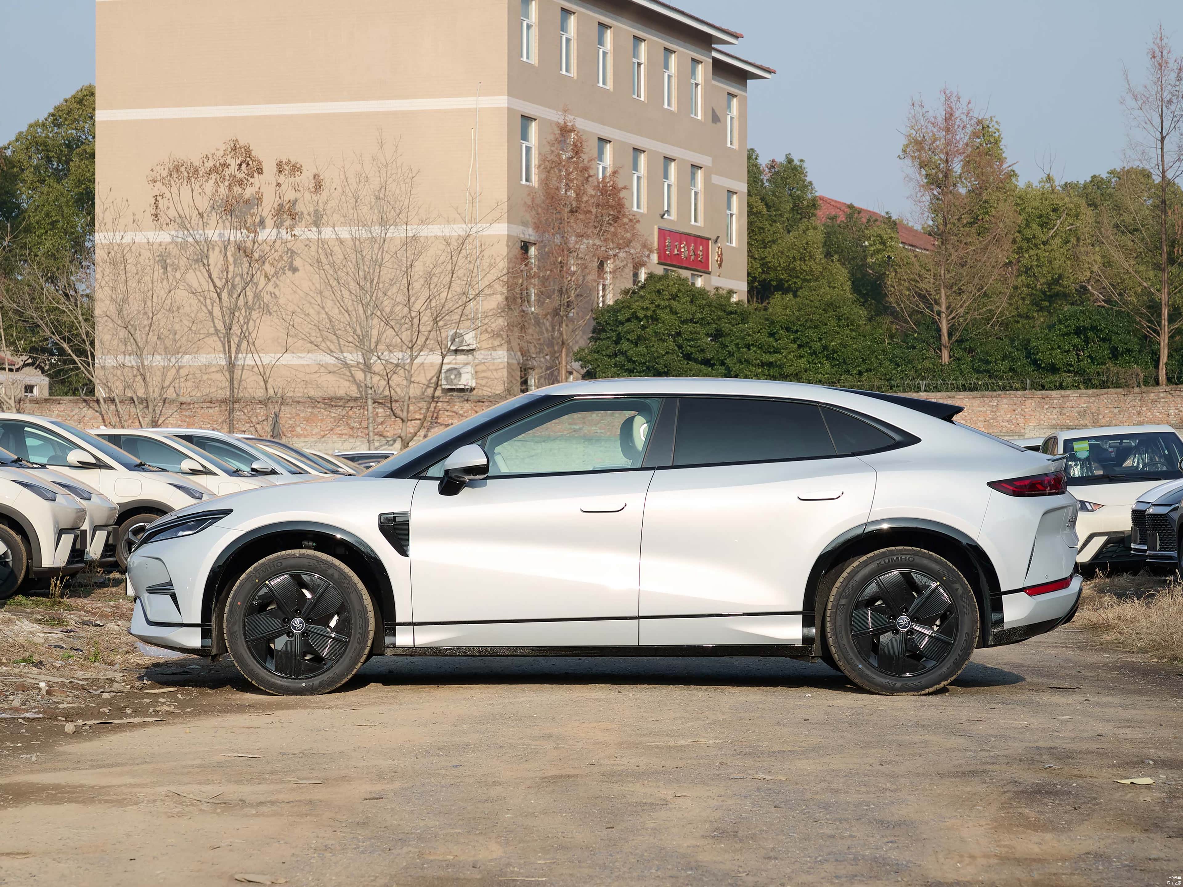 首先官方为其定位是B级先锋猎跑SUV,站在试车旁,只有从尾部看才能觉得这辆车有点SUV的高度,车头造型十分低趴,我觉得其实叫做比亚迪宋GT也不为过,摆在面前感觉就像是大号的钢炮,特别是今天我们长时间相处的试驾车,跟我的奔驰A35一样也是全黑化的样式,瞬间这股感觉就来了。