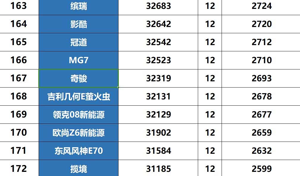 2023年日产奇骏在全国乘用车销量排名当中夺得第167名的成绩。2023年全年累计销量为32319辆,平均下来一个月就能卖出2693辆左右。销量数据来源主要为汽车流通协会以及乘联会。能有这样的成绩主要是得益于该车各方面的表现较为均衡,性价比也较高。