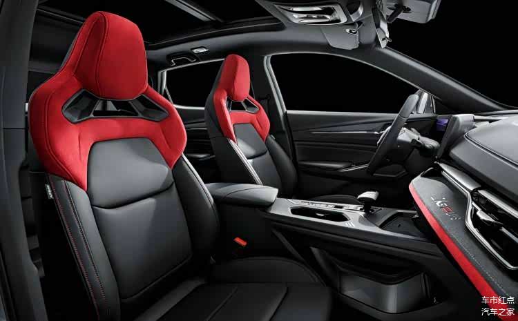 进入车内,整体的内饰布局并没有明显变化,同样是加入了大量红色线条装饰,另外新车还全系标配了一体式运动座椅。