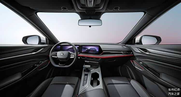 车身侧面同样是加入了红色线条装饰,这样的设计其实在CS系列上已经有过应用。车尾采用了流光烈焰尾翼设计,配合双阶脉冲高位刹车灯同样突出了整车的运动感。